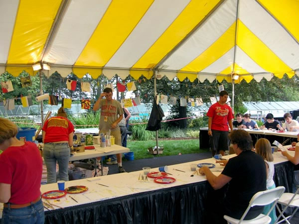 One of the first things we noticed when we walked in was a tent full of people painting. It turns out they gave everyone a 10x0 square piece fo paper that they painted on to complete a large poster. | |
