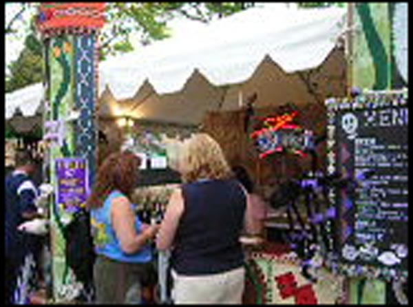 Cindy and Jen shopping at one of the many booths selling custom work.
