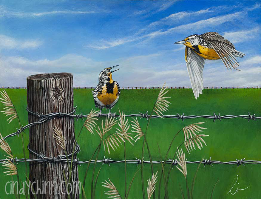 Meadowlarks Painting: The state bird of Nebraska is featured in this rural scene.