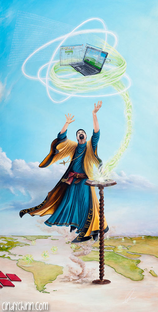 This painting of a computer wizard was a commision. I would love to paint 'your' journey. Contact me for a commision.
