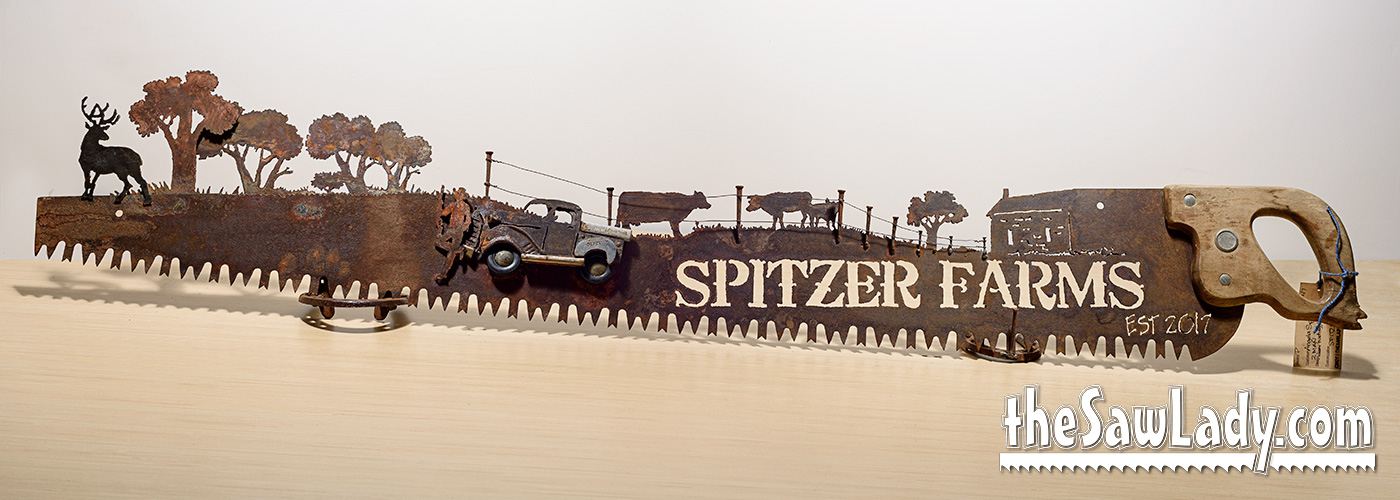 I am available to work with with you on your unique commission, large or small. You can view more of my saws and other work on my new website, TheSawLady.com