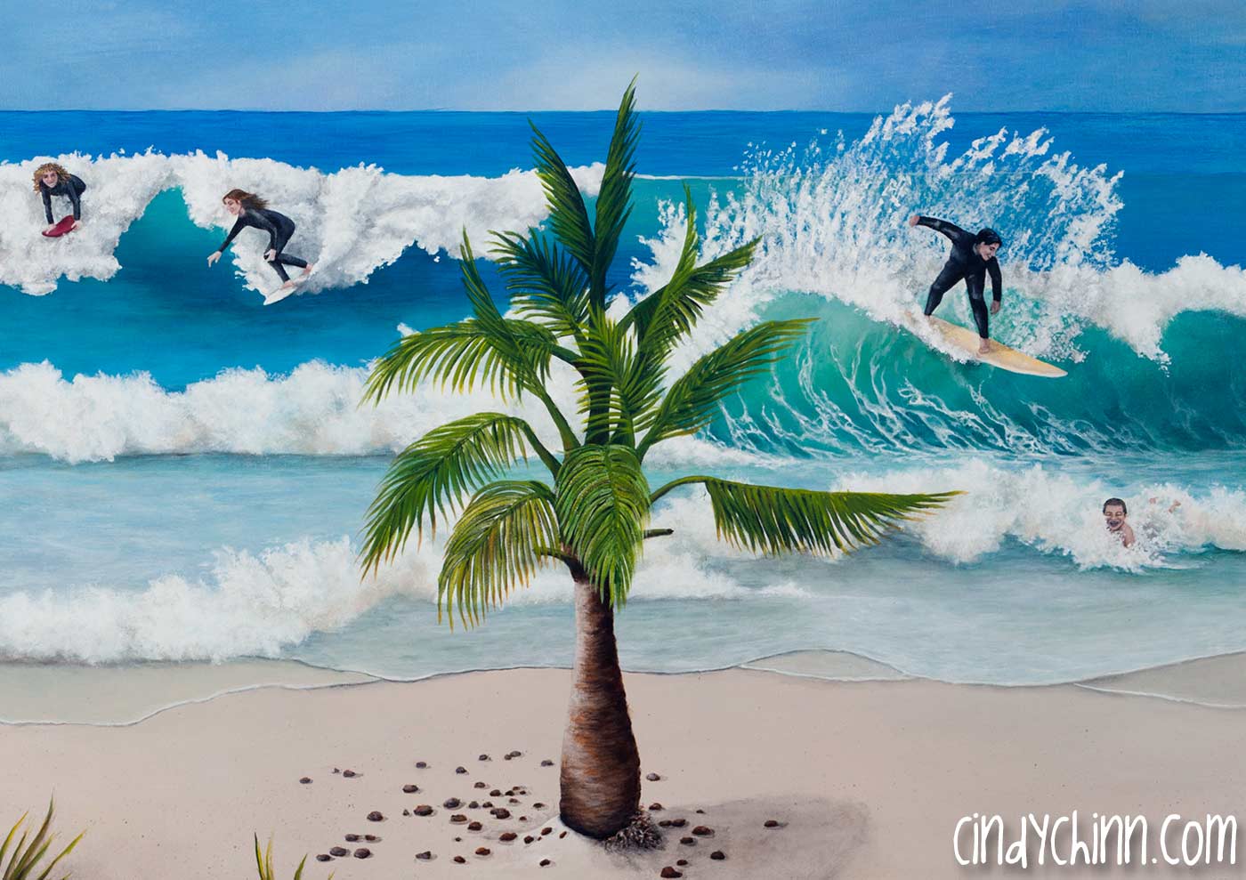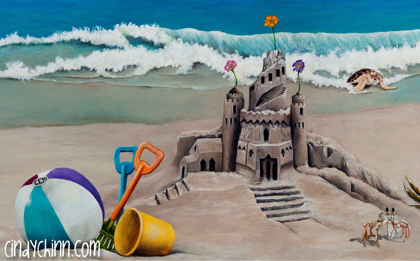 I had a lot of fun with these two murals. I consulted with the kids to see what their interests were and tried to incorporate a lot into these murals for their bedrooms. Each mural was 4 feet tall by over 14' wide. I painted them in my studio and installed them on site.