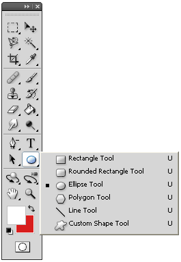 Being able to add shapes to your image greatly enhances your skill set in Photoshop. Shapes work similar to the Pen Tool that you learned about in Tutorial 1-11. As well as drawing a shape with a pen, you can also draw using a preset tool such as a rectangle. Obviously it should be easier to draw a rectangle than four lines. To get started, I'm giving you a look at the shape flyout and then we'll go through each one.