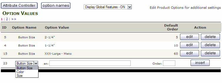 OPTION VALUES Now that you have created an Option Name, you can add Option Values to it. Navigate to Catalog>Option Values for this screen: