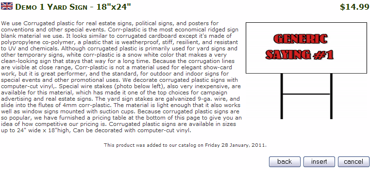 What you'll see is a very basic preview. This is a good place to check that you have uploaded the correct image, check for spelling mistakes and other errors. To edit the product before placing it in your catalog, press the If you are happy with all of the data, press the Pressing