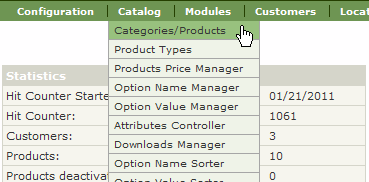 Login to the administration section of your Zen Cart store and find the Catalog > Categories/Products menu item.